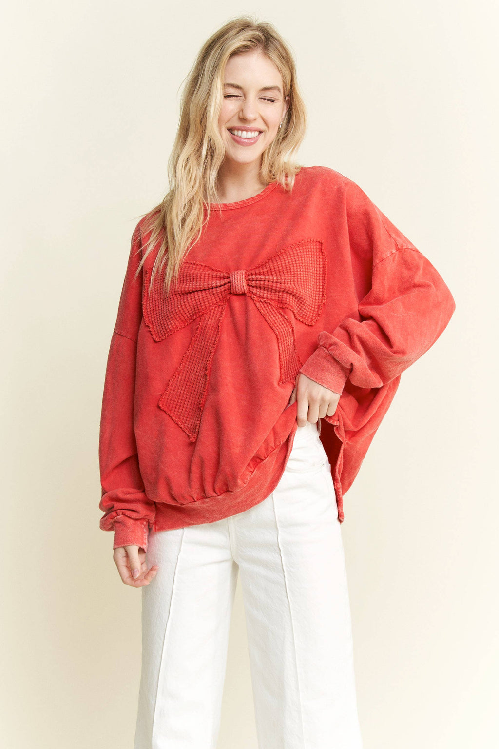 I'm a gift for you Waffle Ribbon bow terry top HT6129