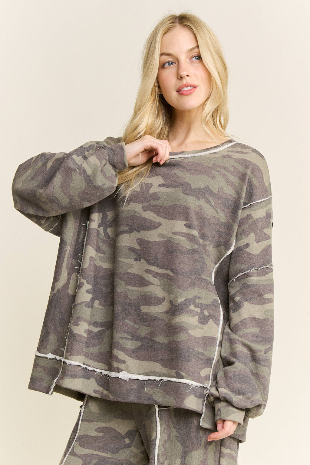 Washed Camo Crewneck Sweatshirt top HT6890P1