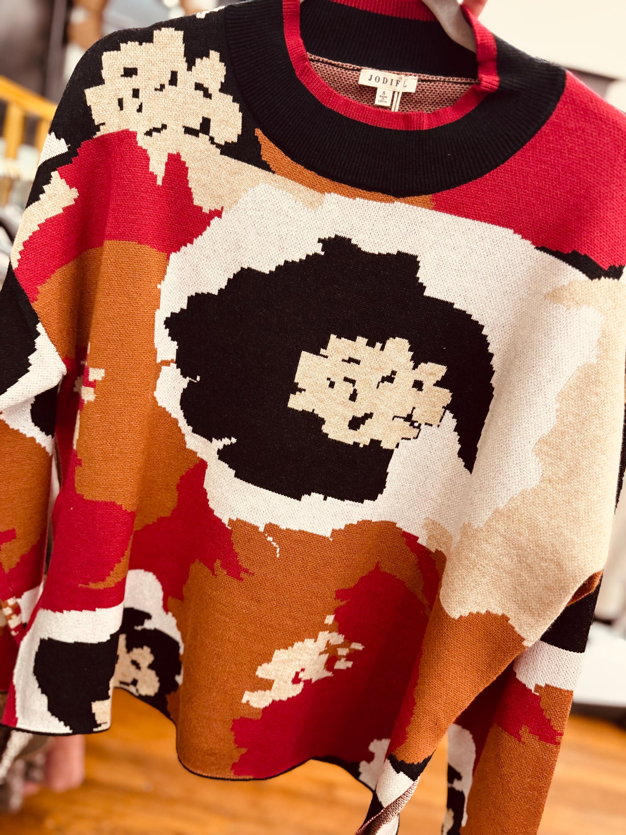 This mock neck floral sweater is lightweight and perfect for fall! The colors are beautiful and will really pop! Runs true to size.