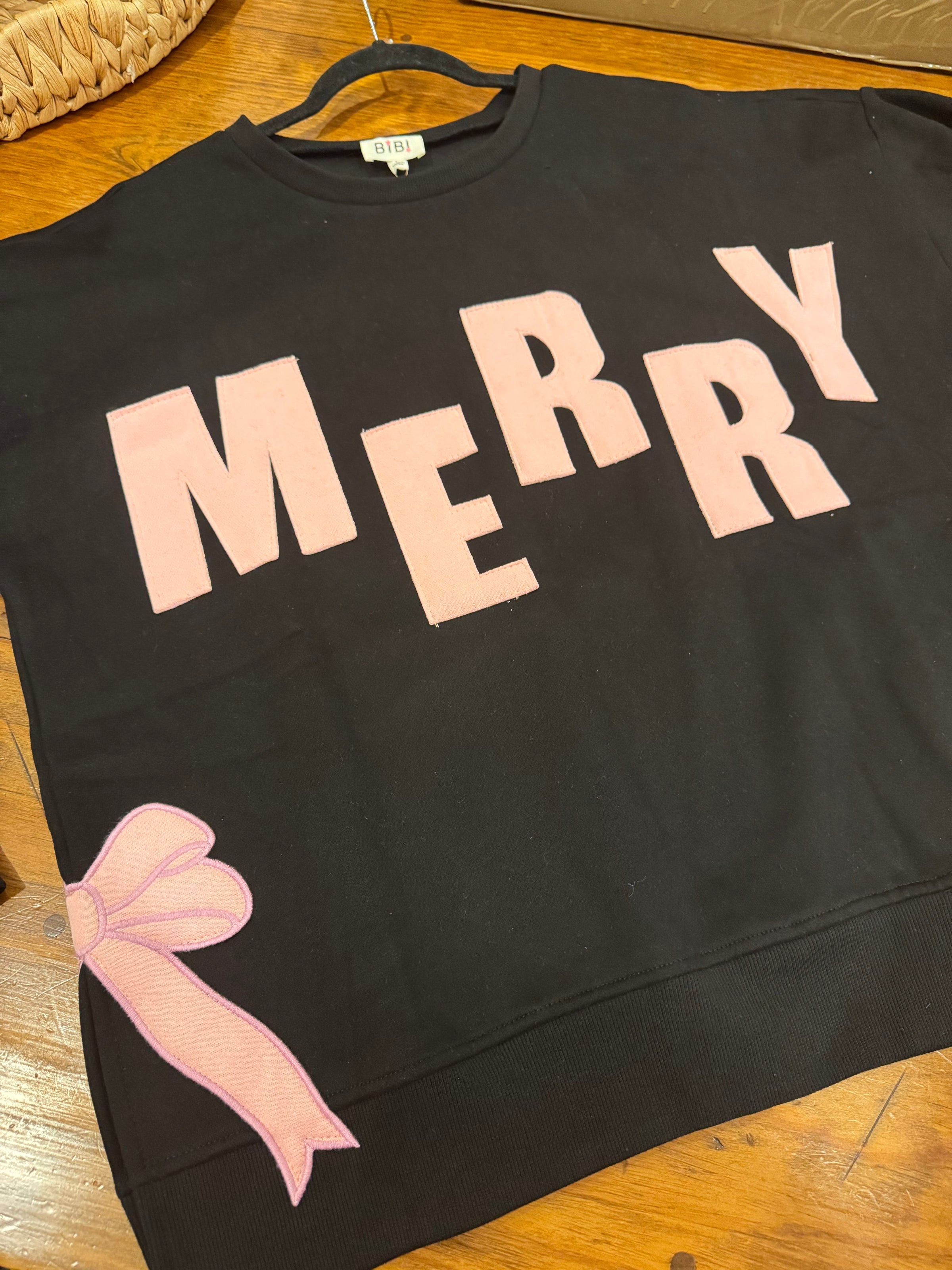 This black Merry sweatshirt is adorable! The bow details on the side will for sure make a statement!