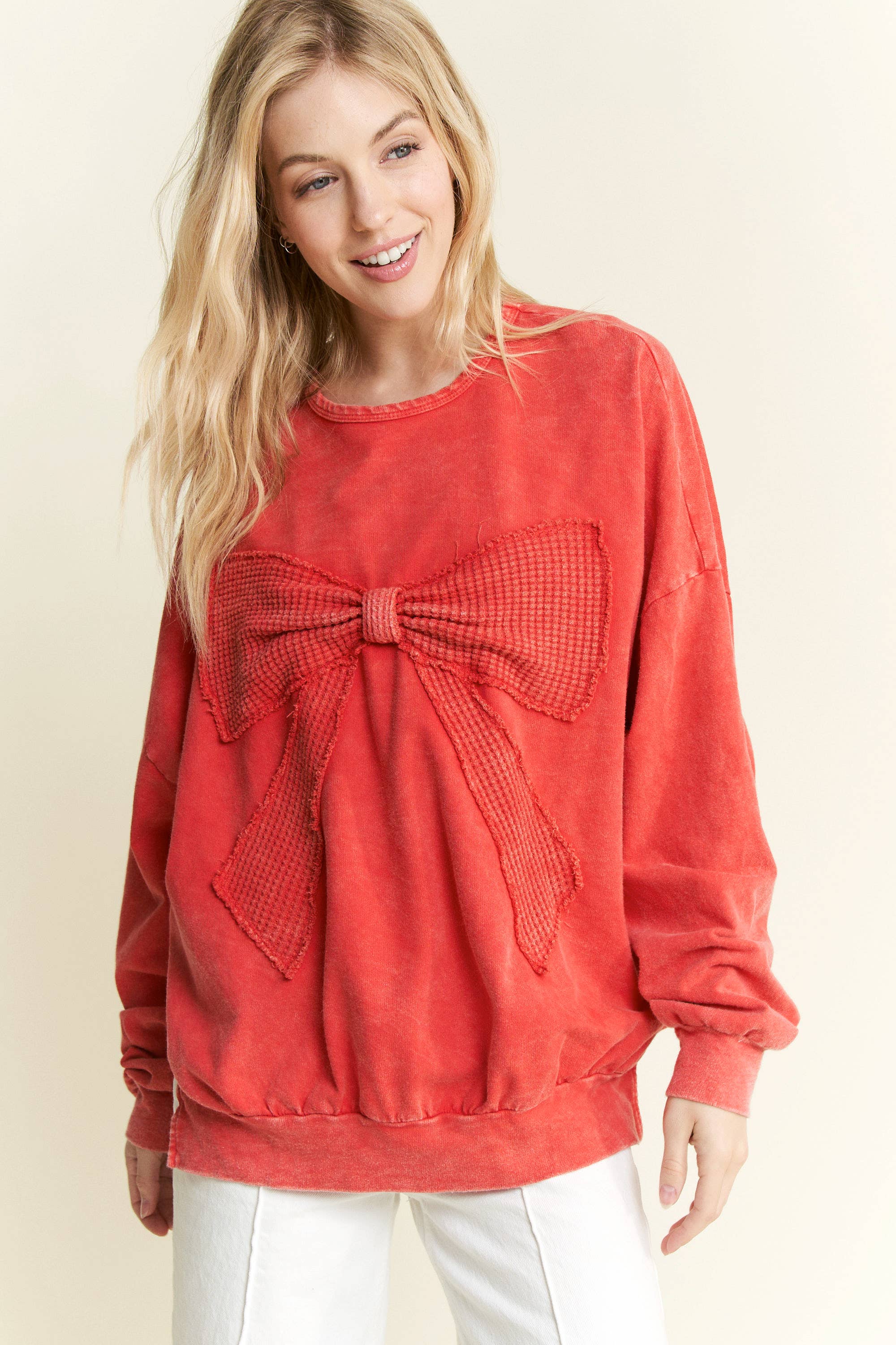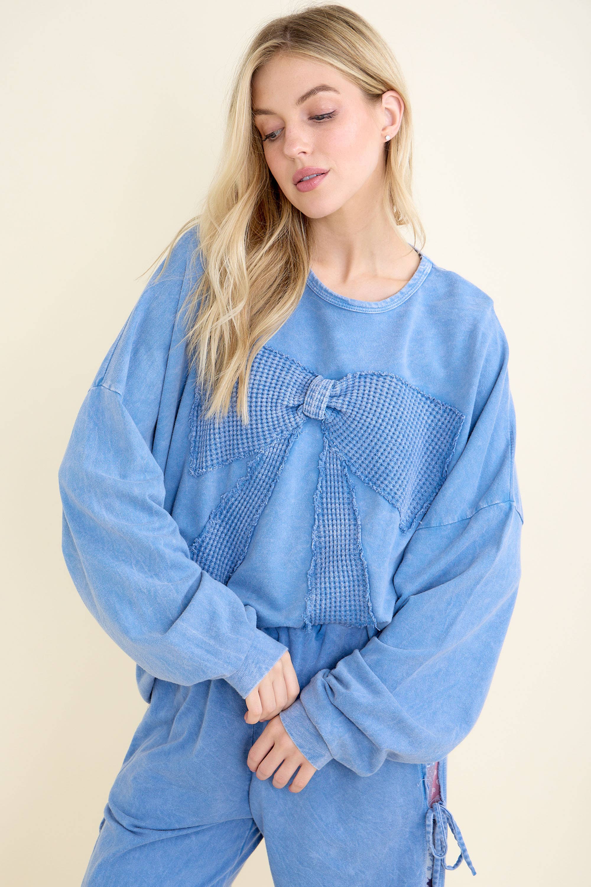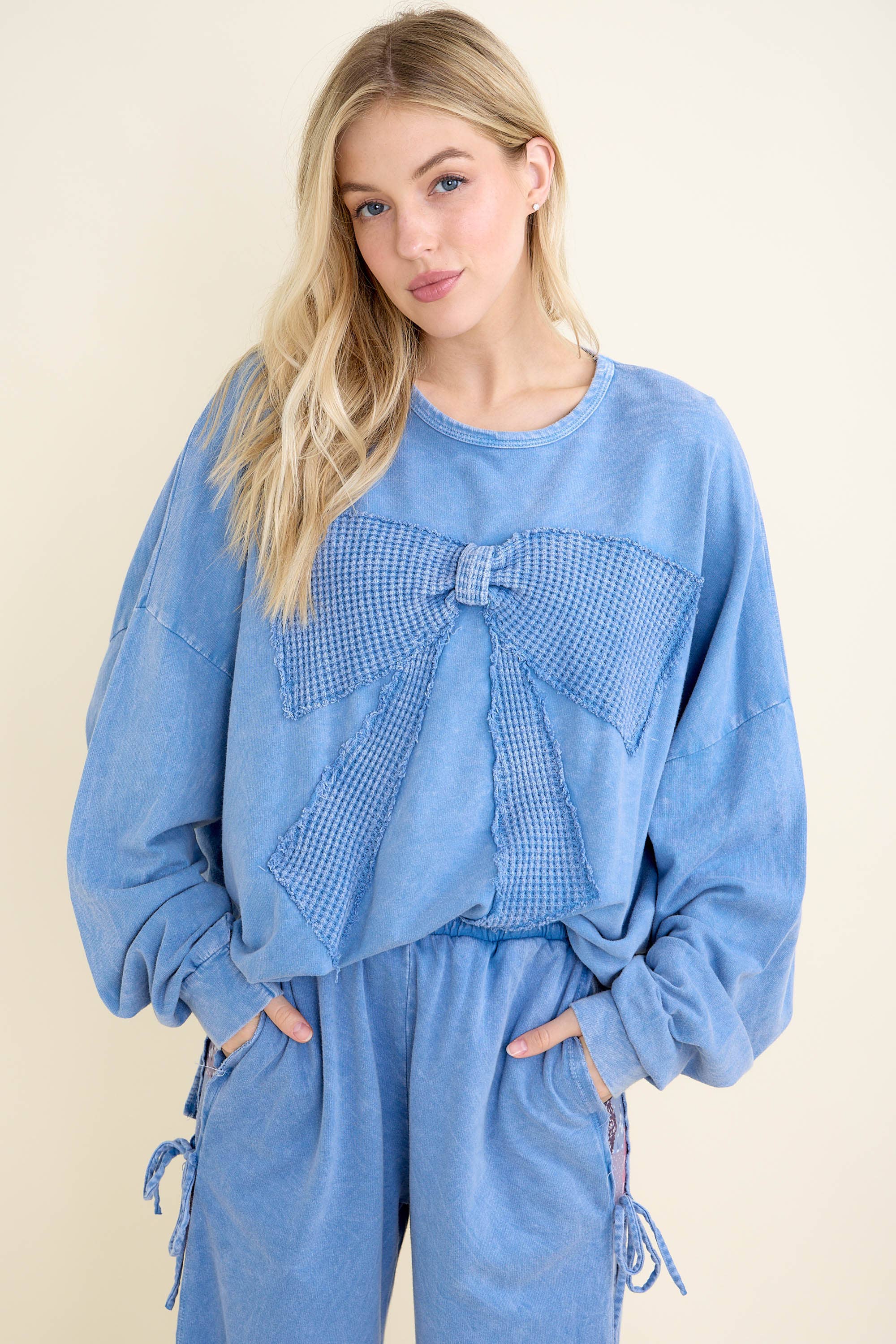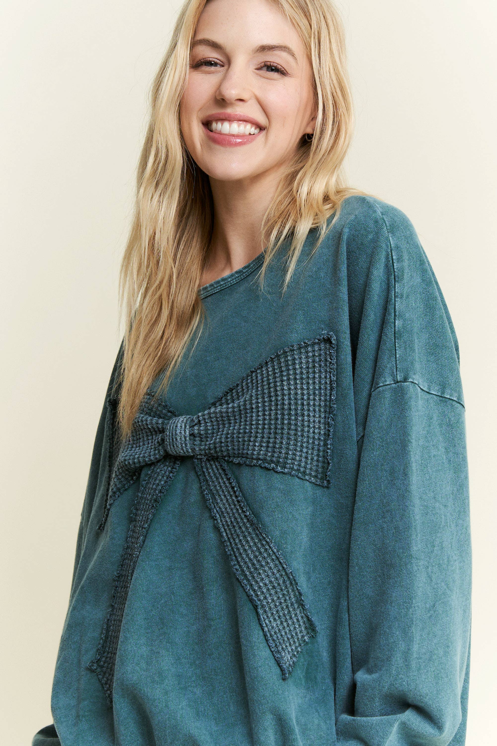 I'm a gift for you MineralWash Waffle Ribbon bow terry top