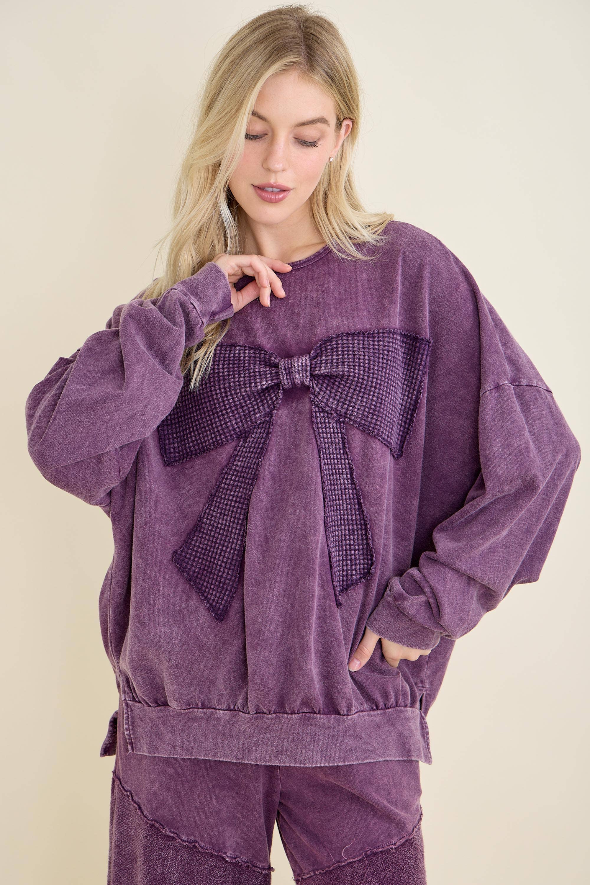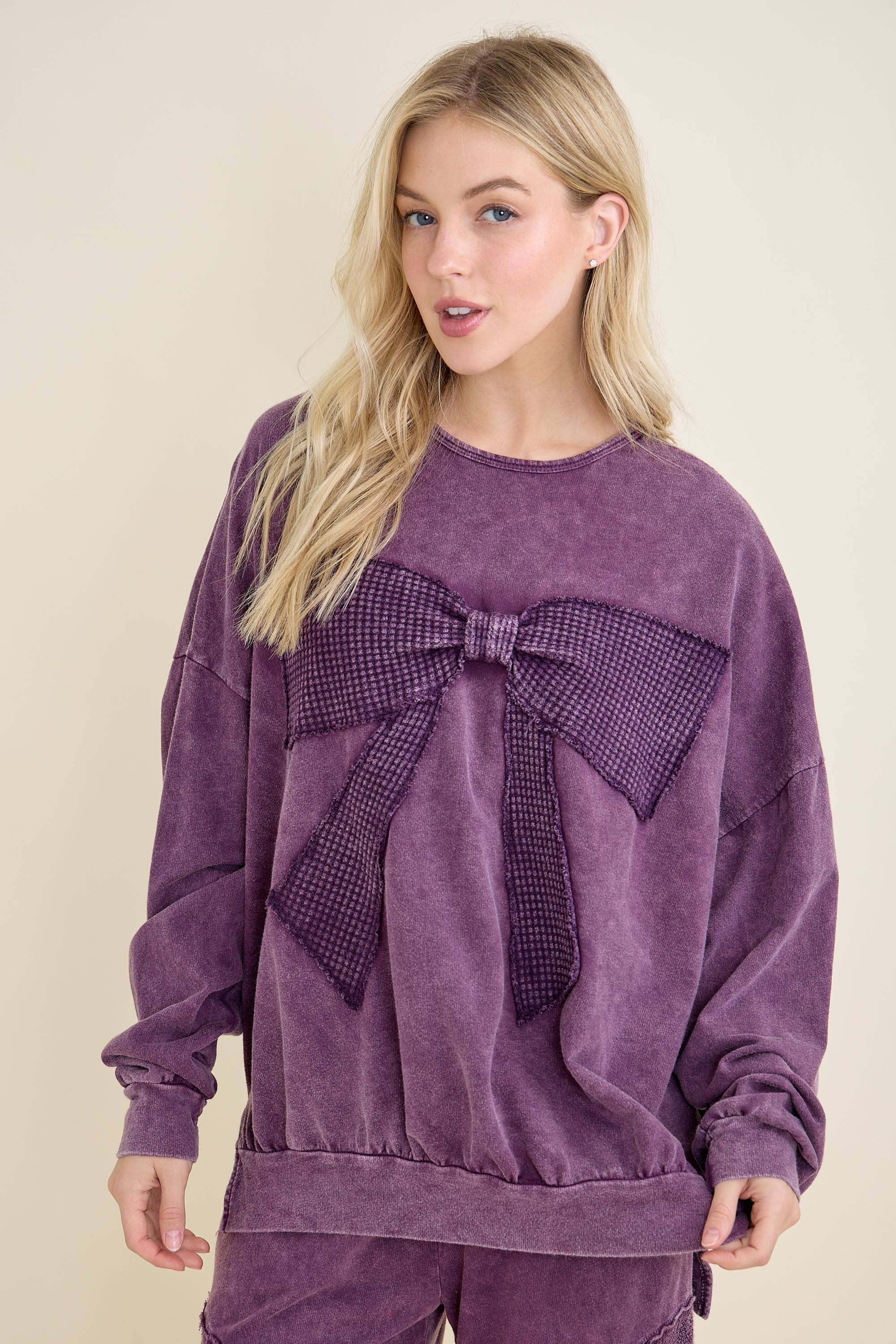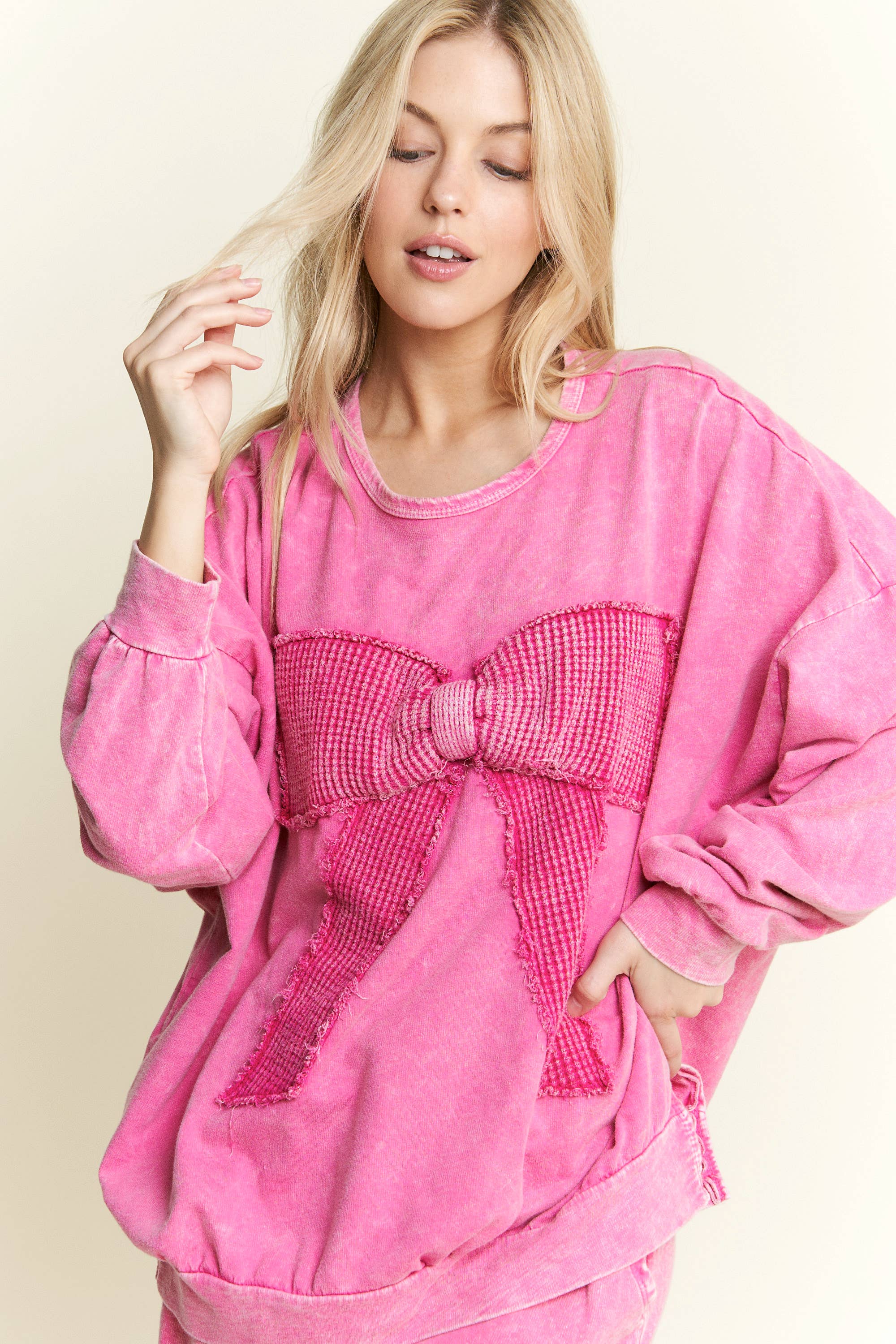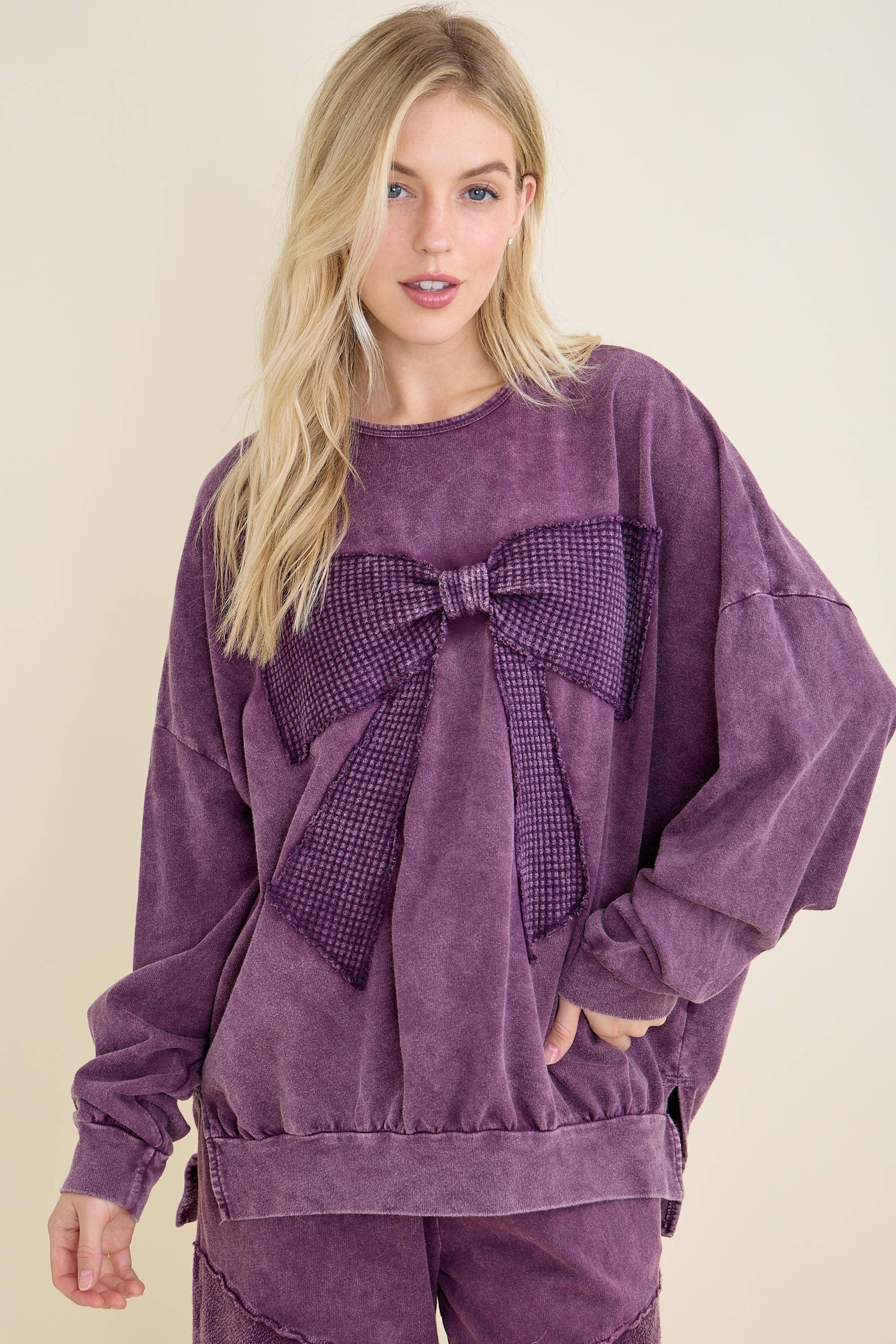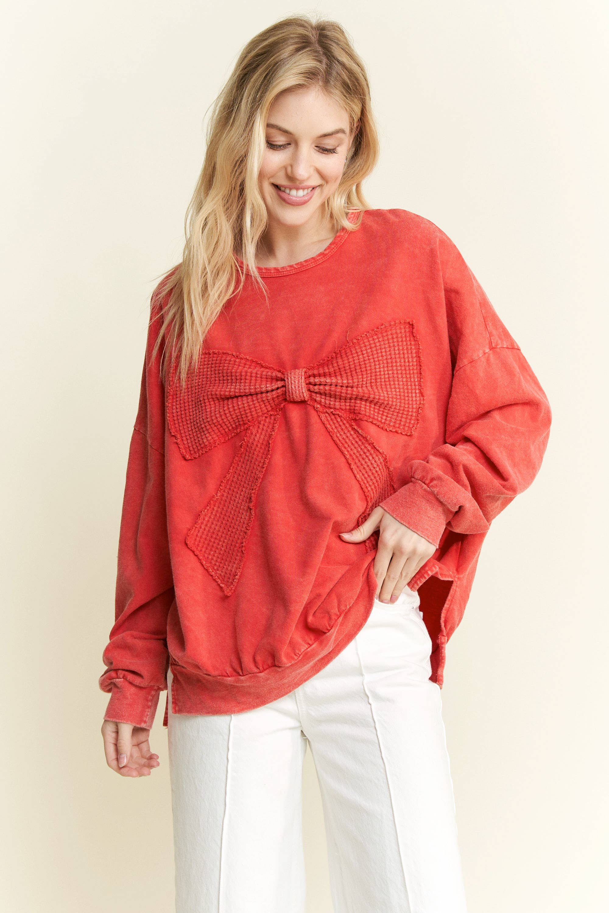 I'm a gift for you MineralWash Waffle Ribbon bow terry top