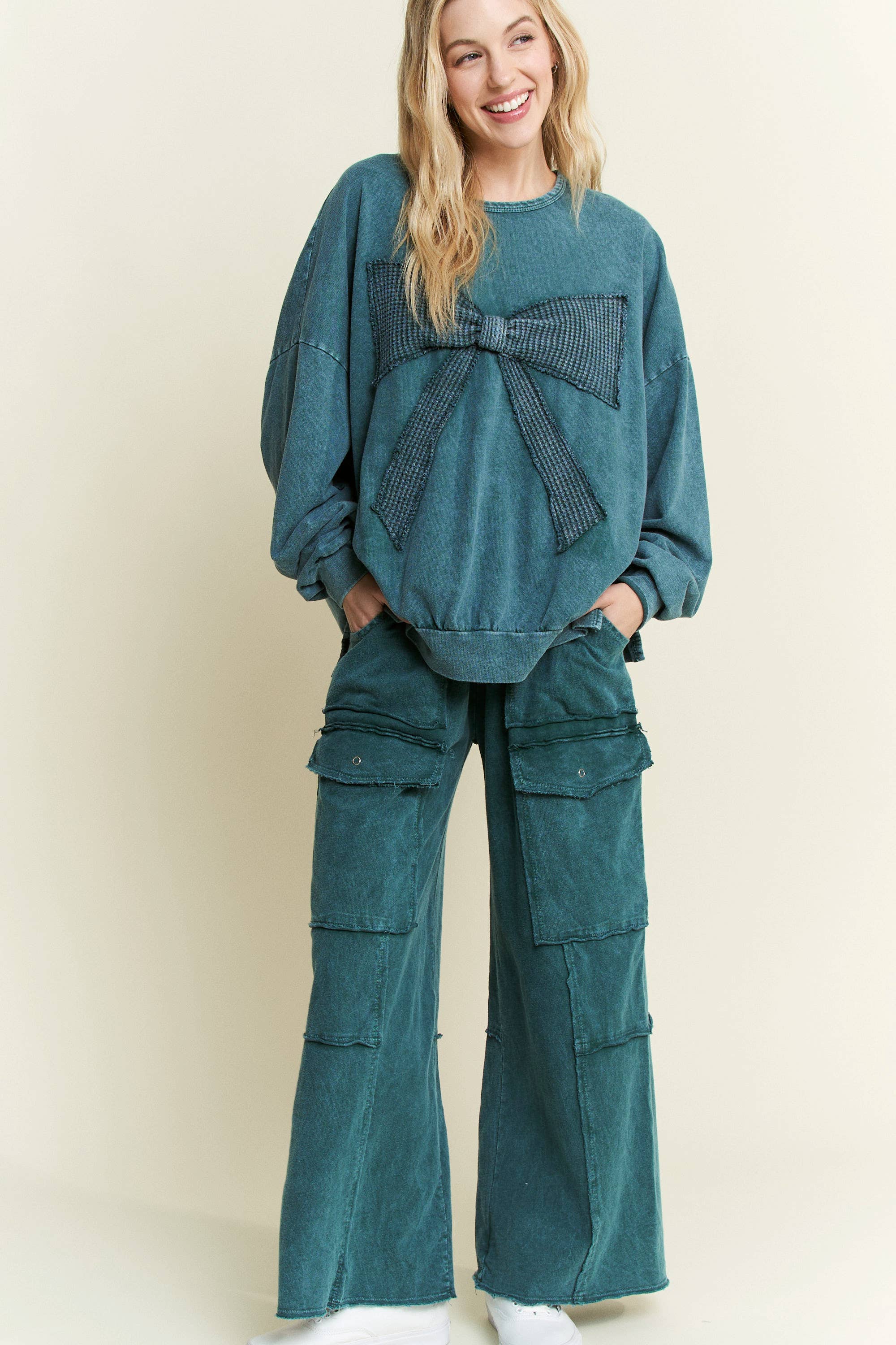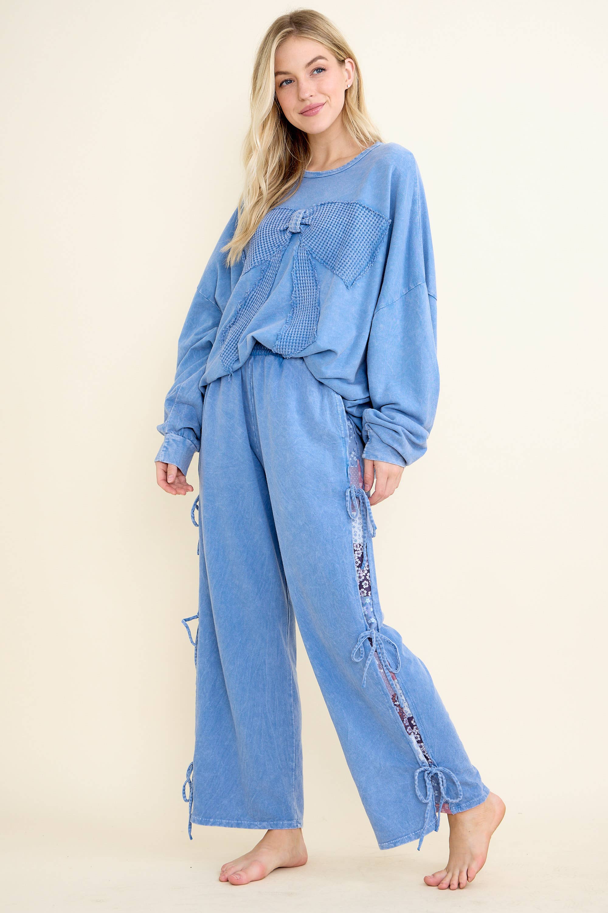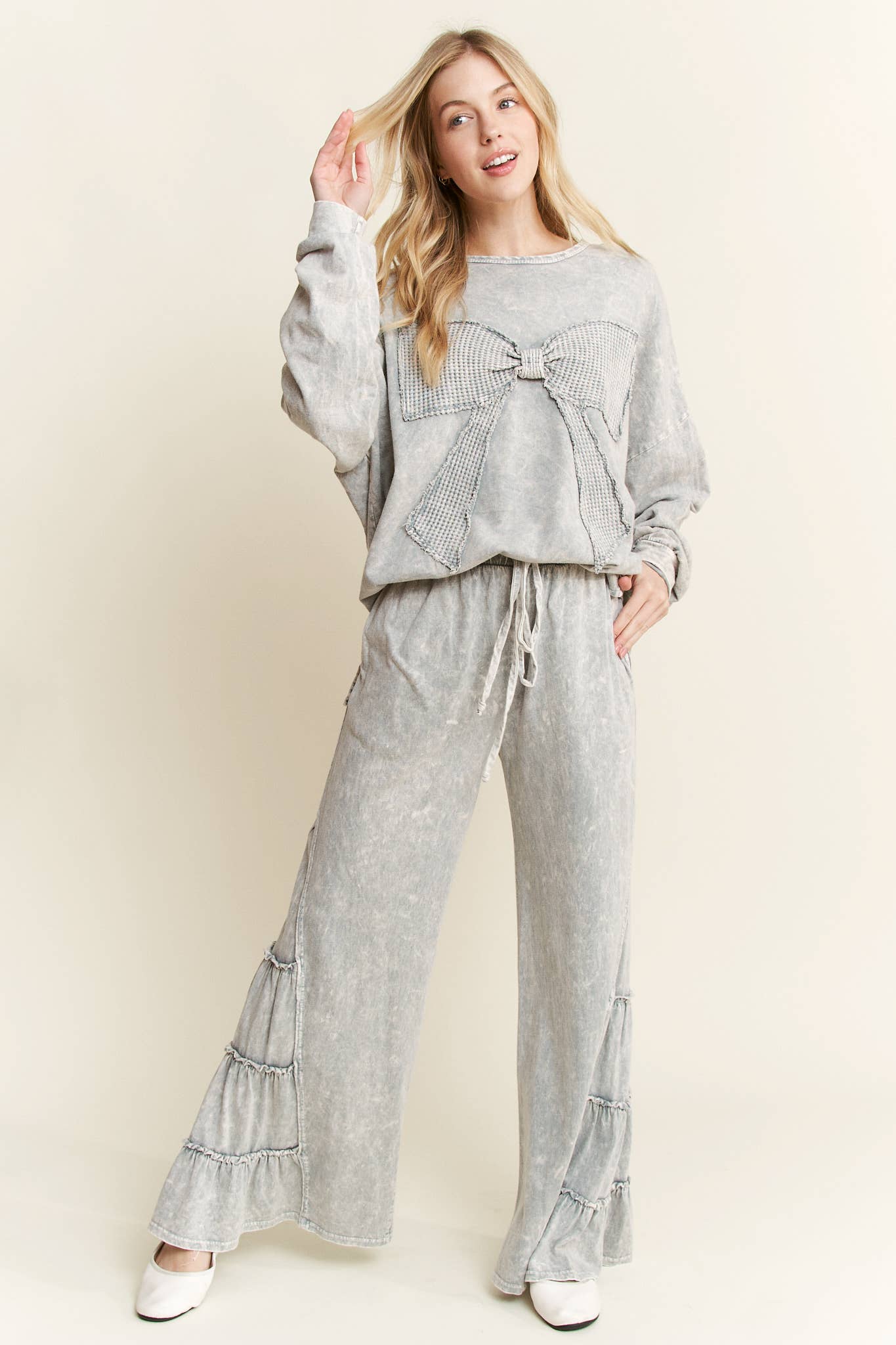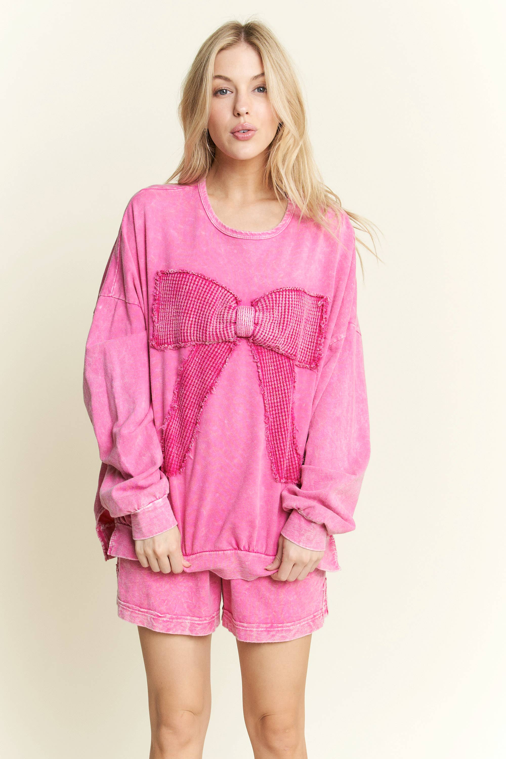 I'm a gift for you MineralWash Waffle Ribbon bow terry top