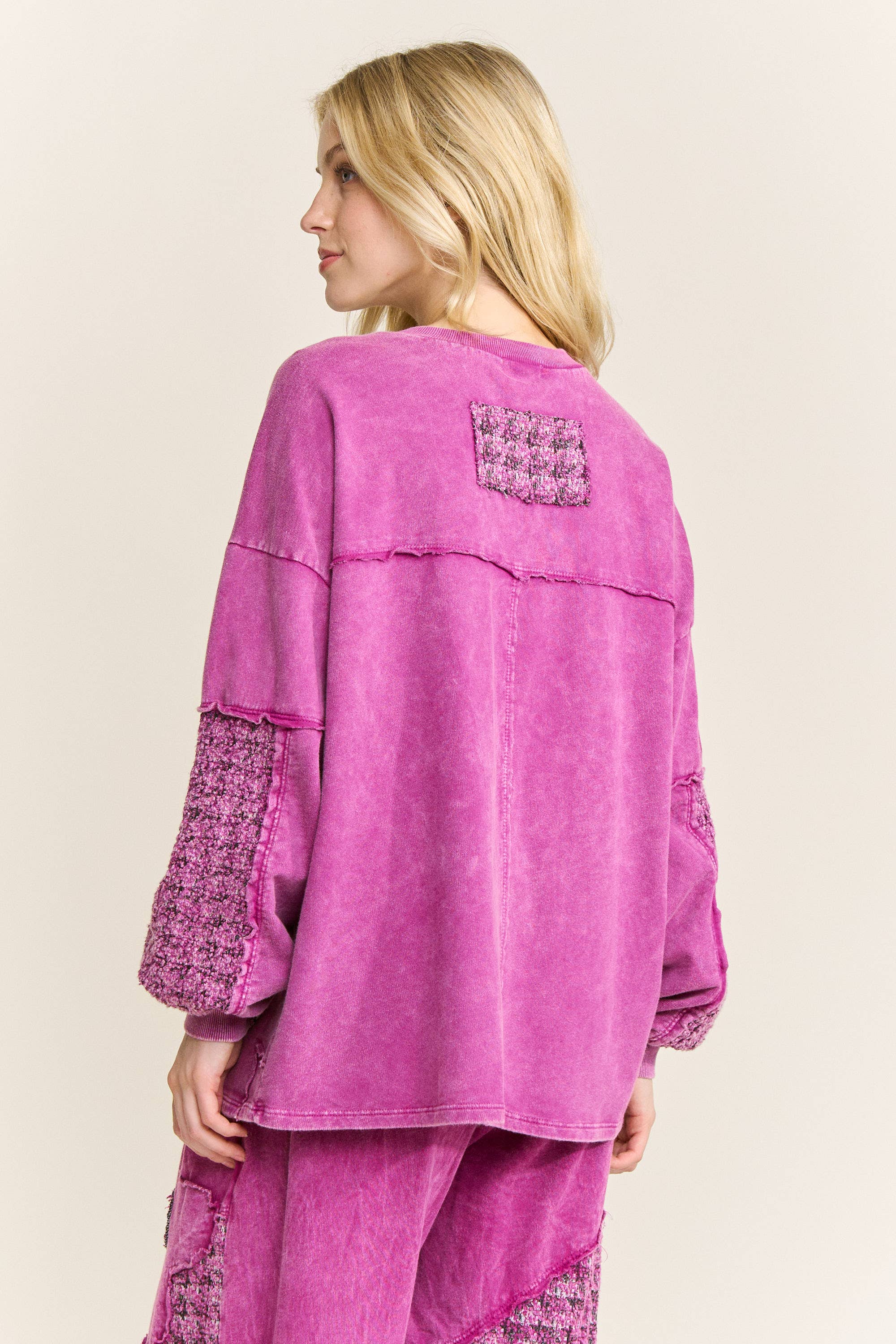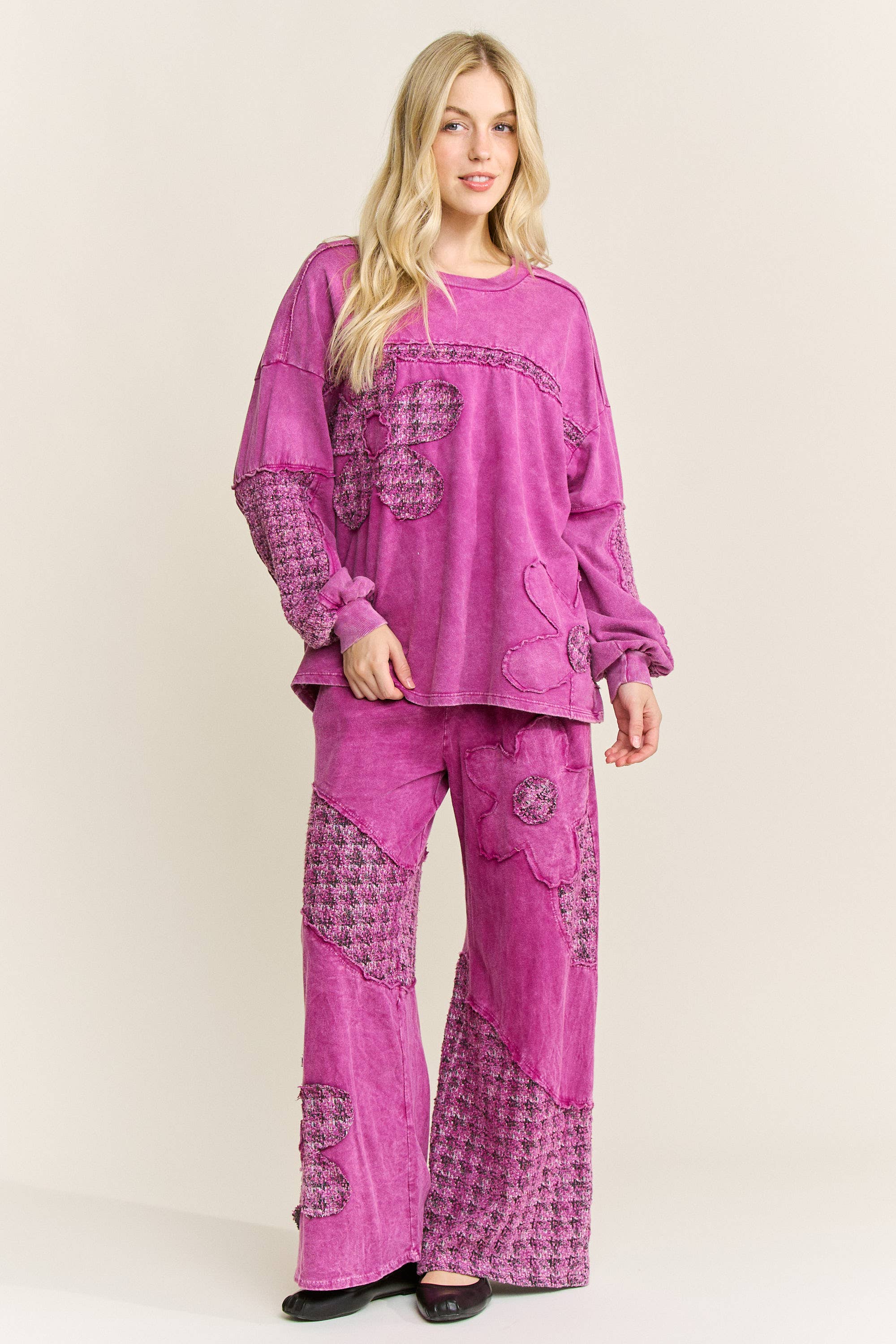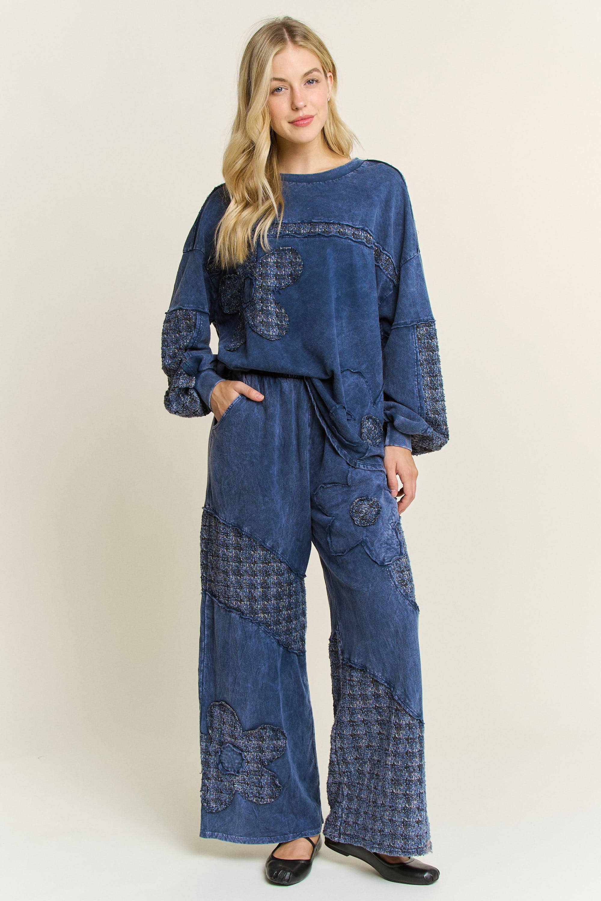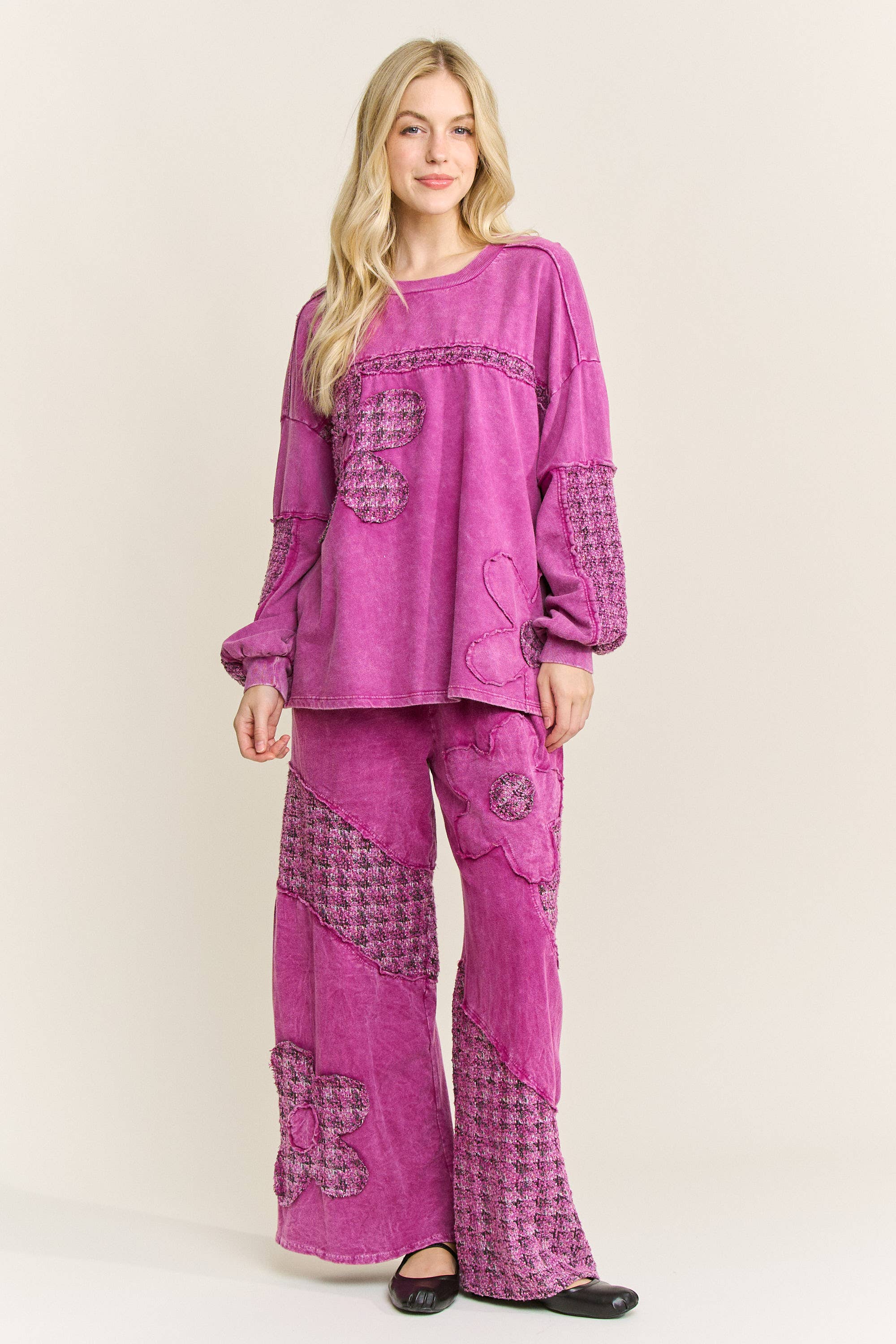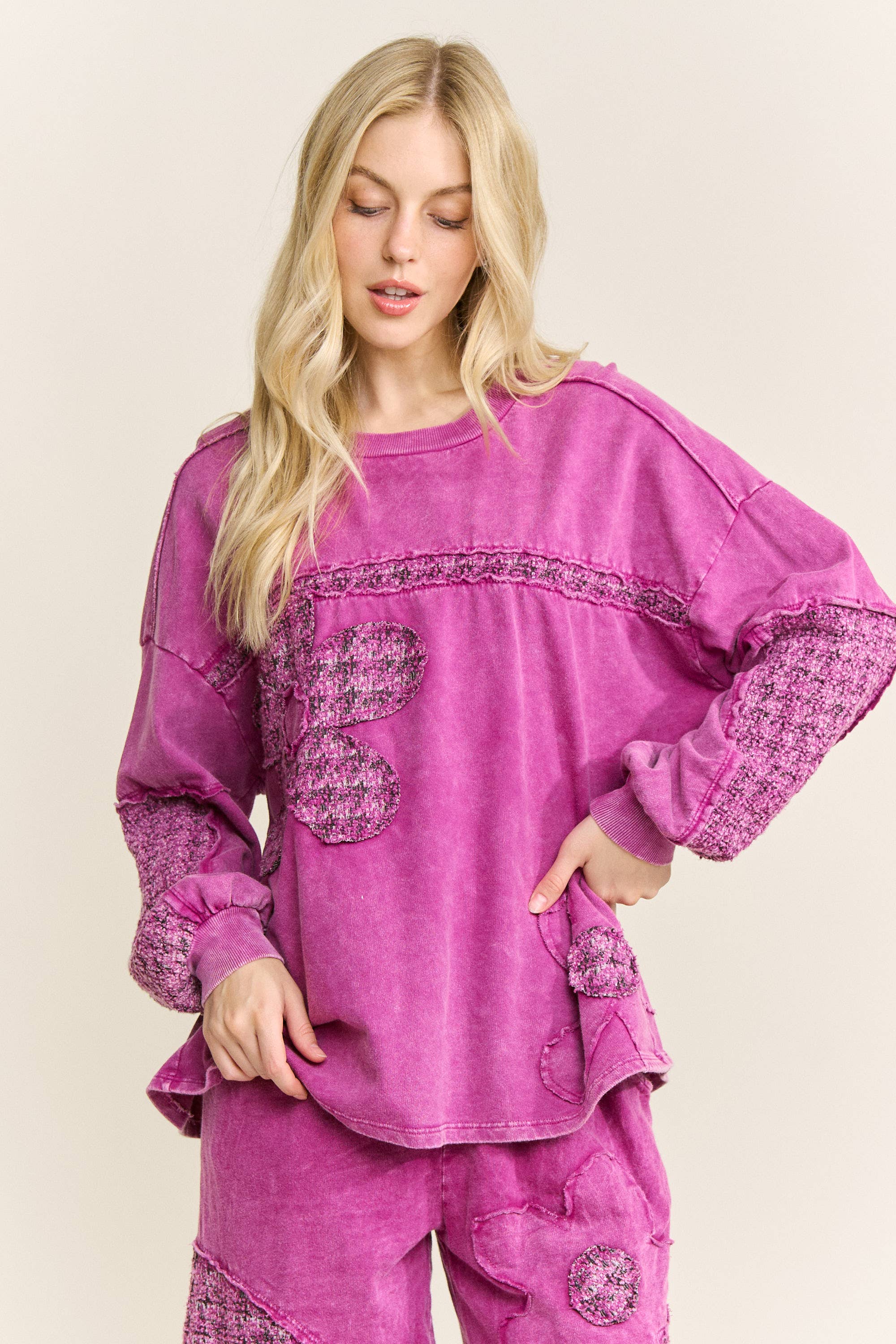 Mineral Washed Tweed Daisy patch Long sleeve top