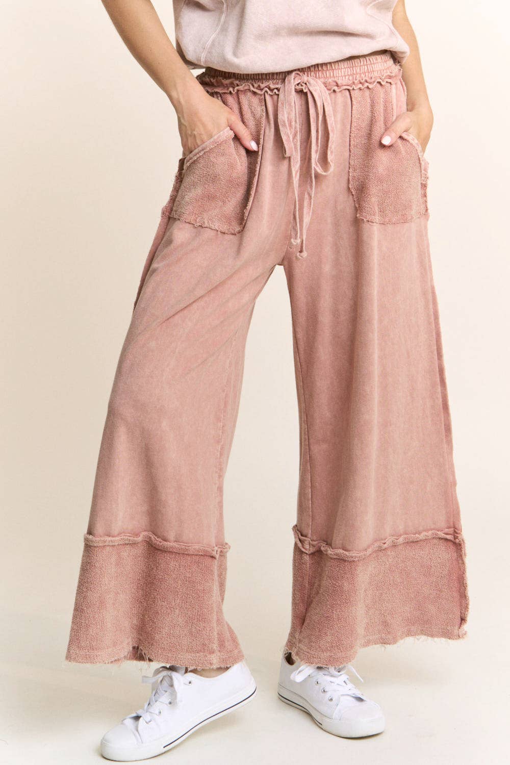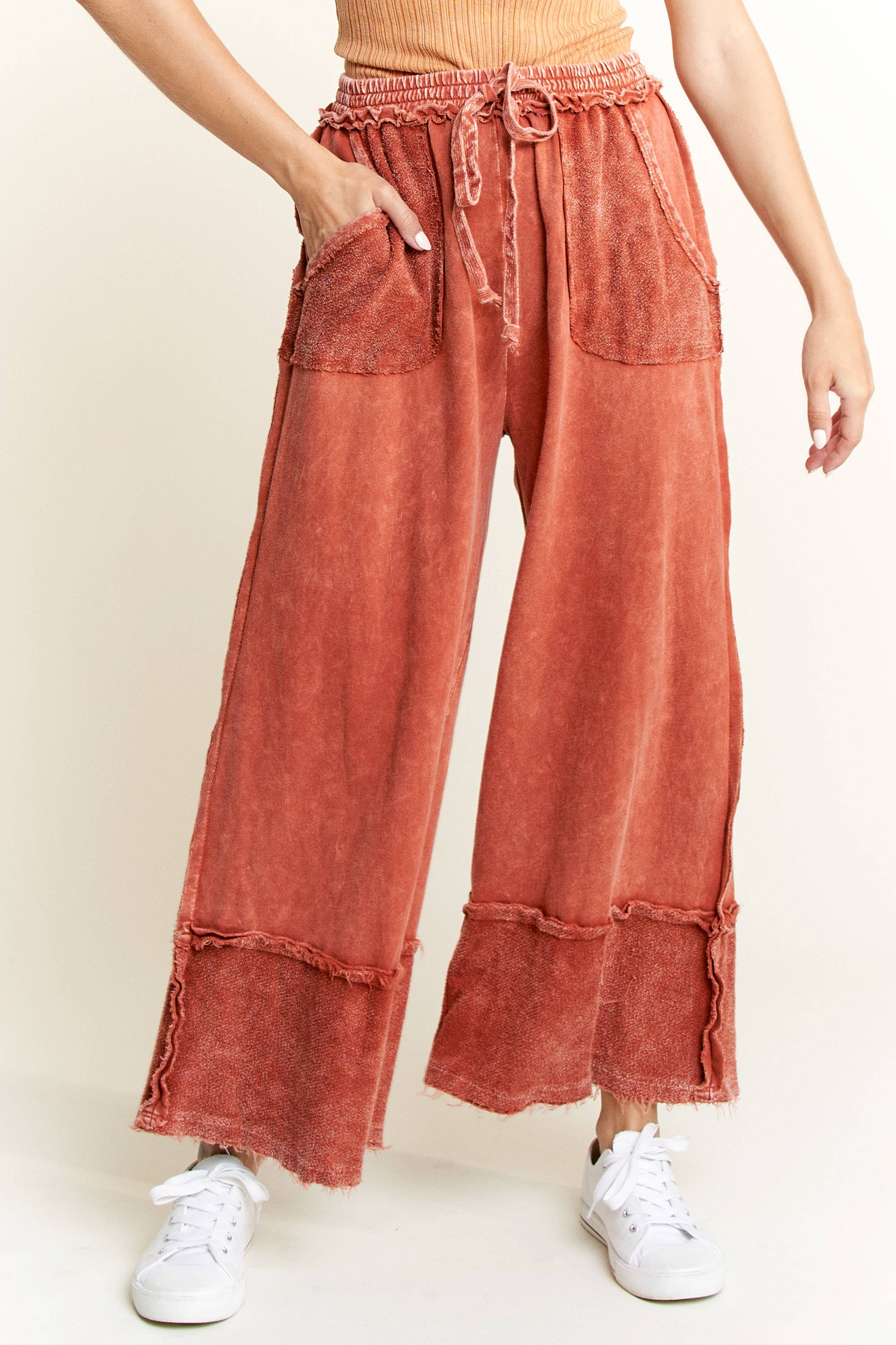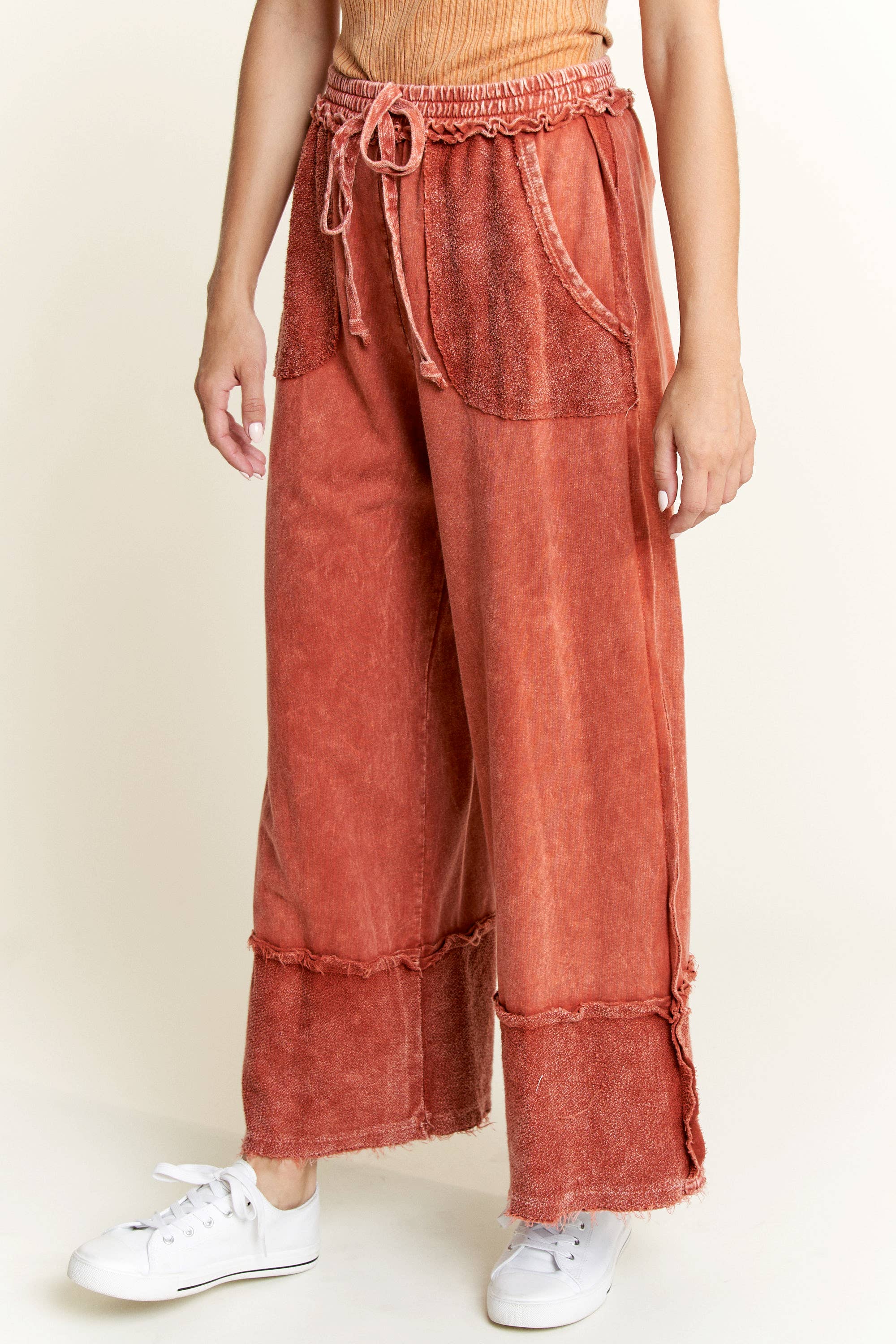 Mineral Wash Wide Pants with raw hem frayed details Bestseller of FALL PANTS *  Actual colors may vary due to screens displaying colors different *
