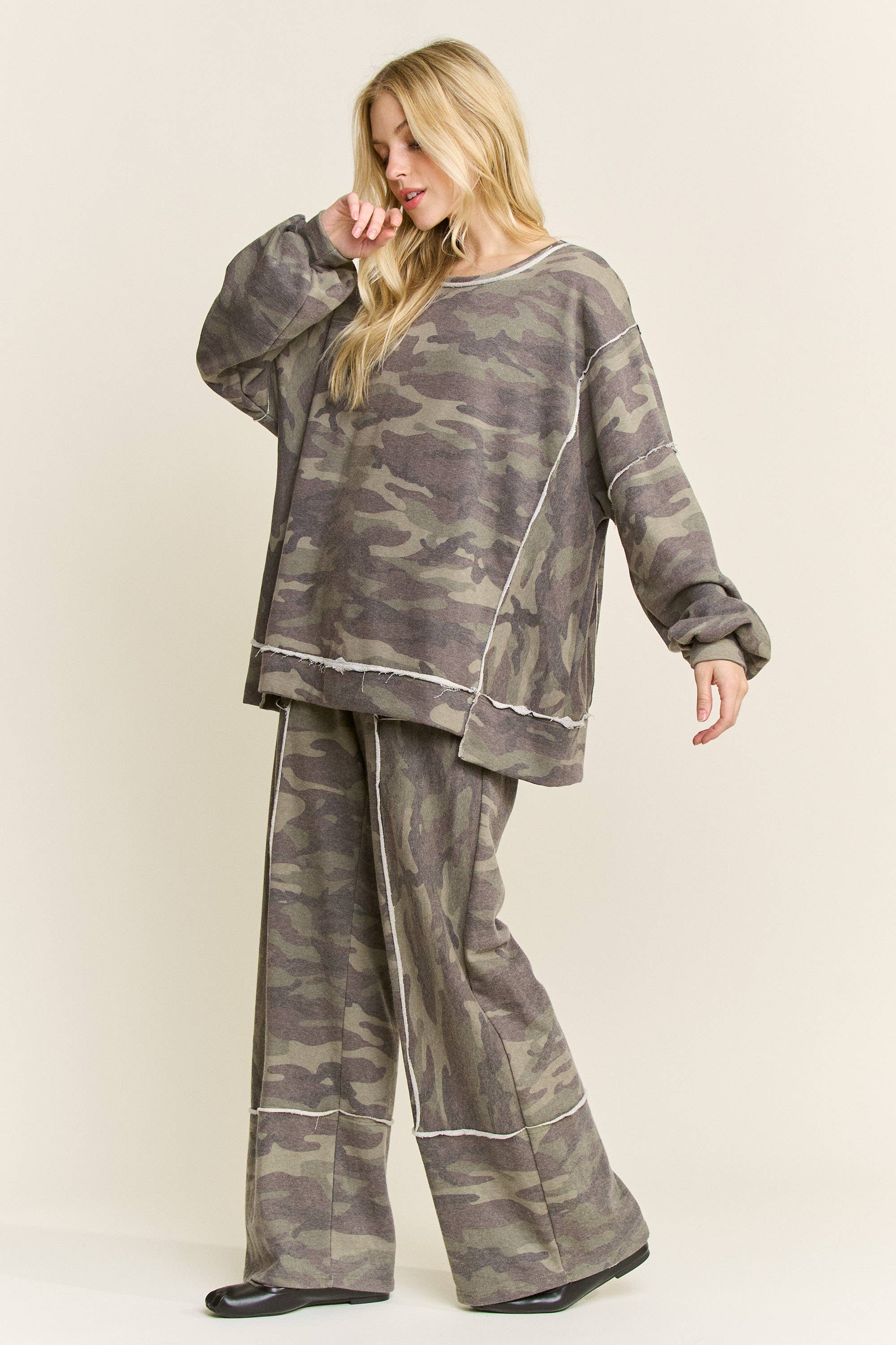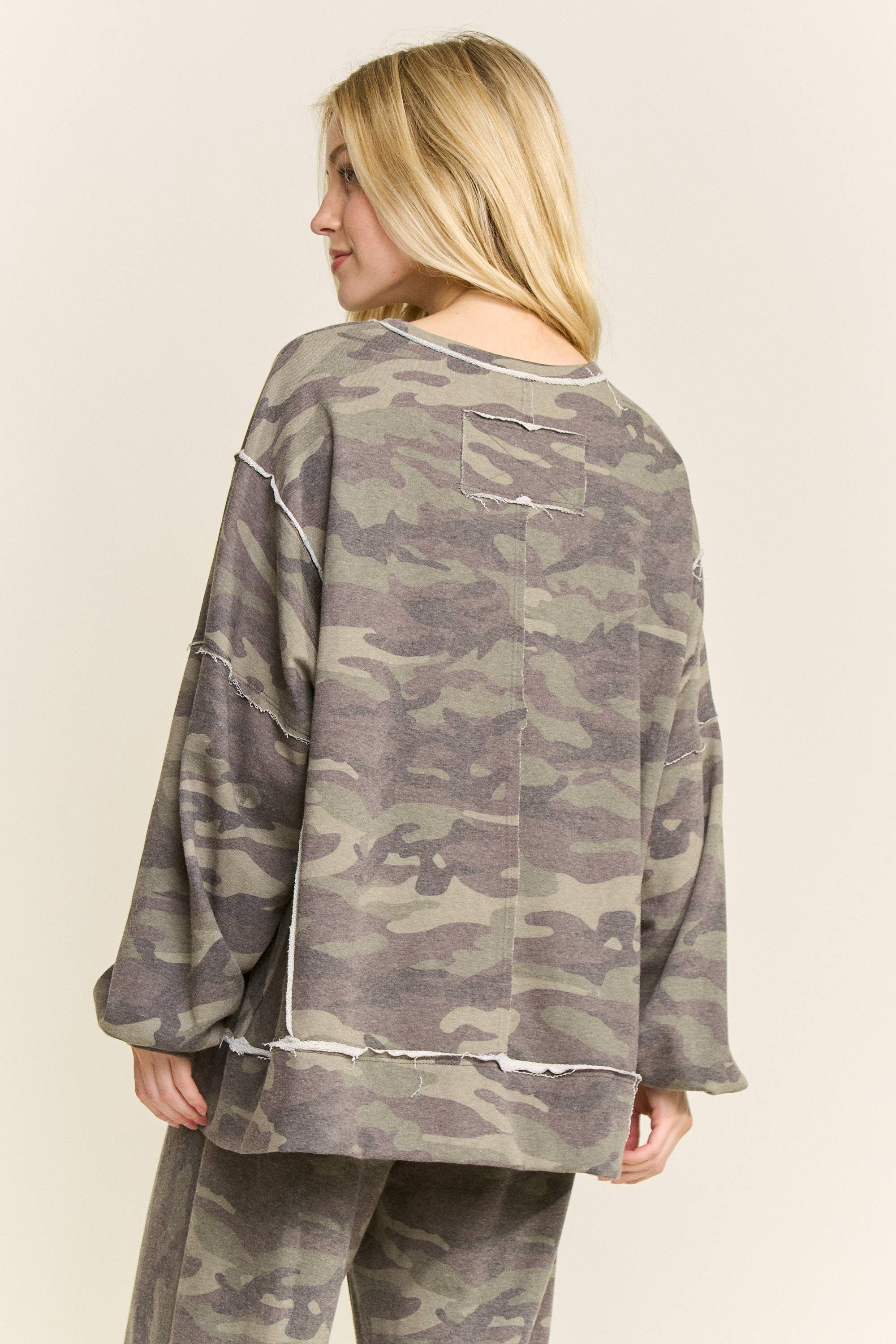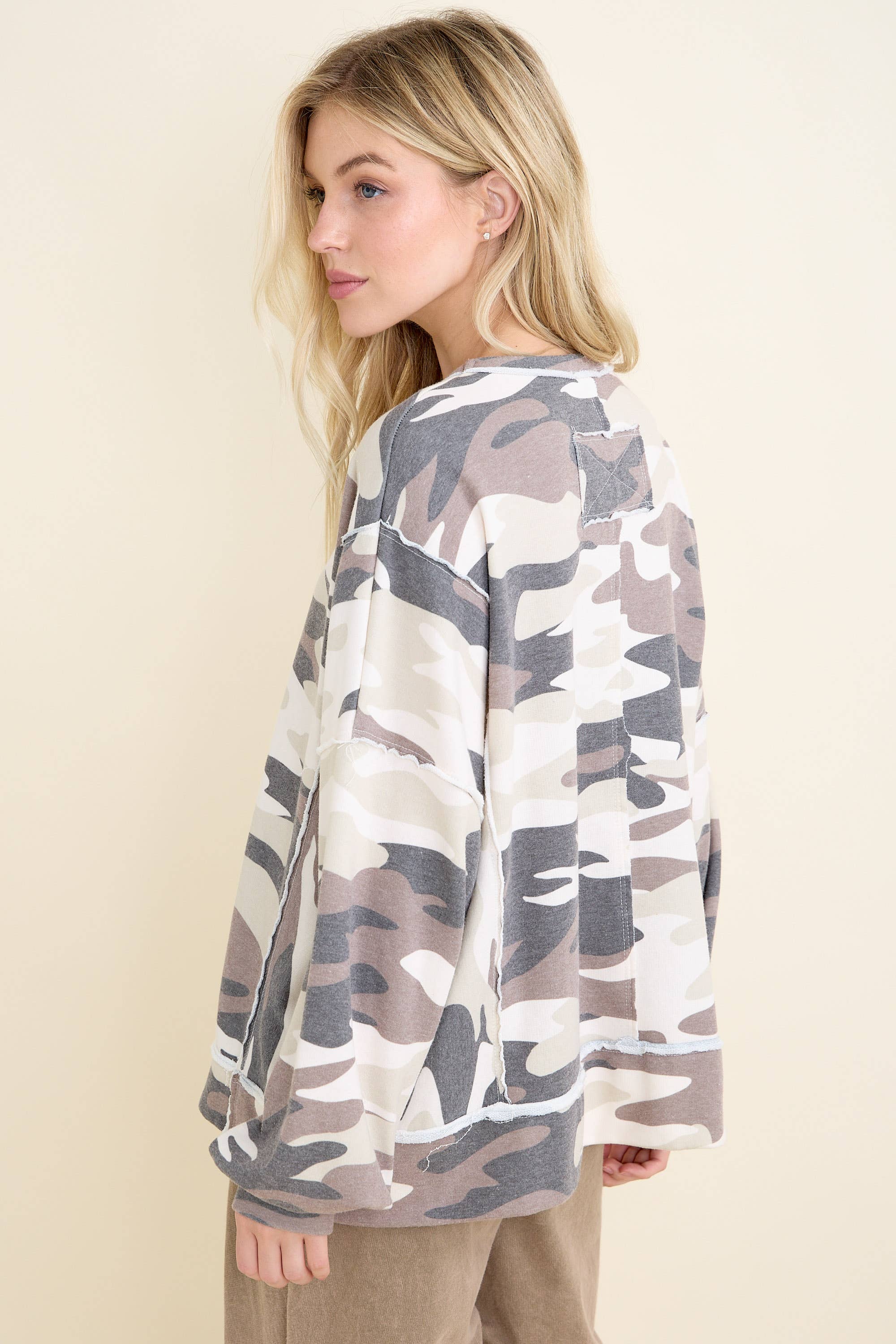 Washed Camo Crewneck Sweatshirt top HT6890P1