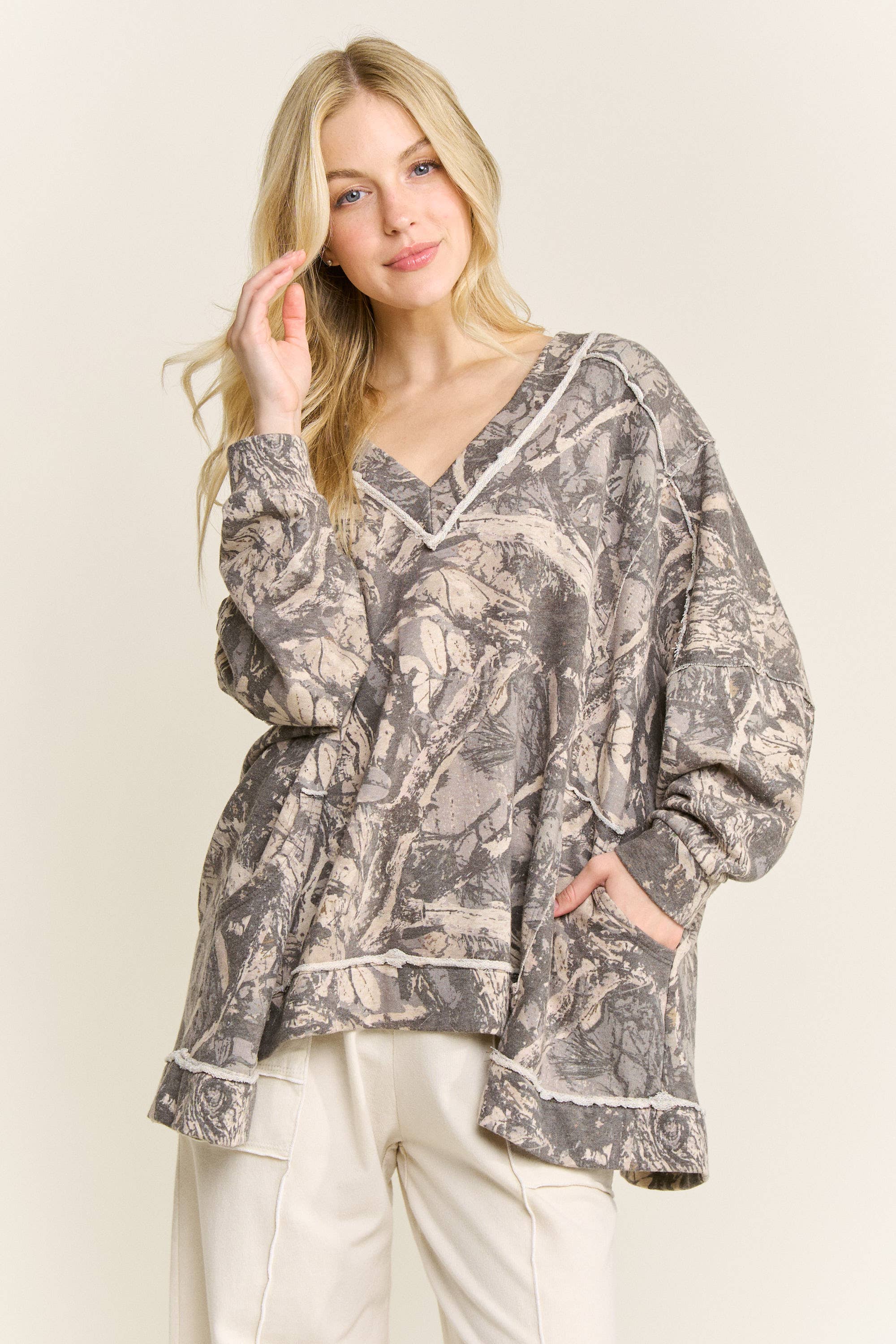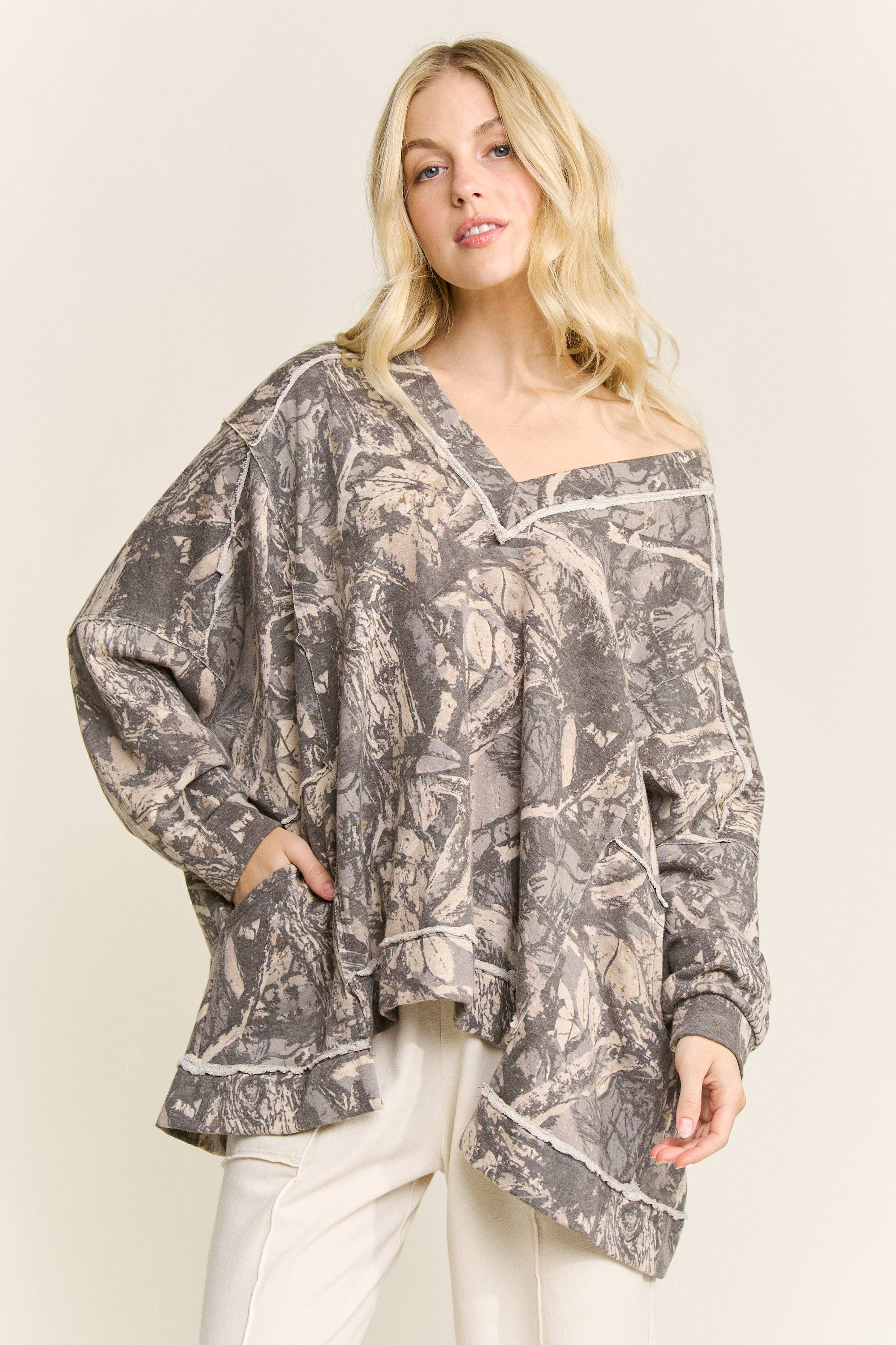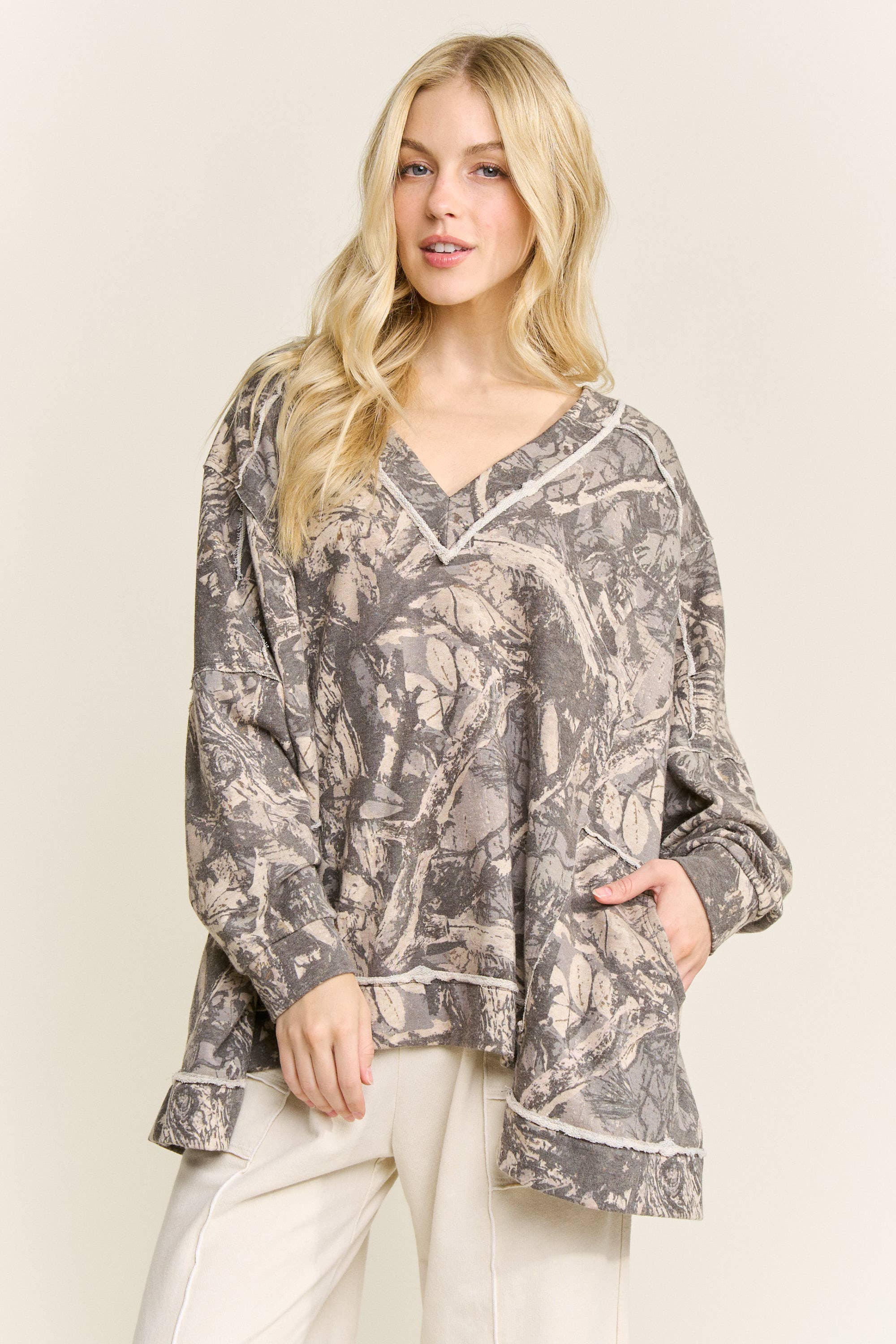 Our Washed Camo Deep V-neck Terry Pullover shirt is a standout piece!!